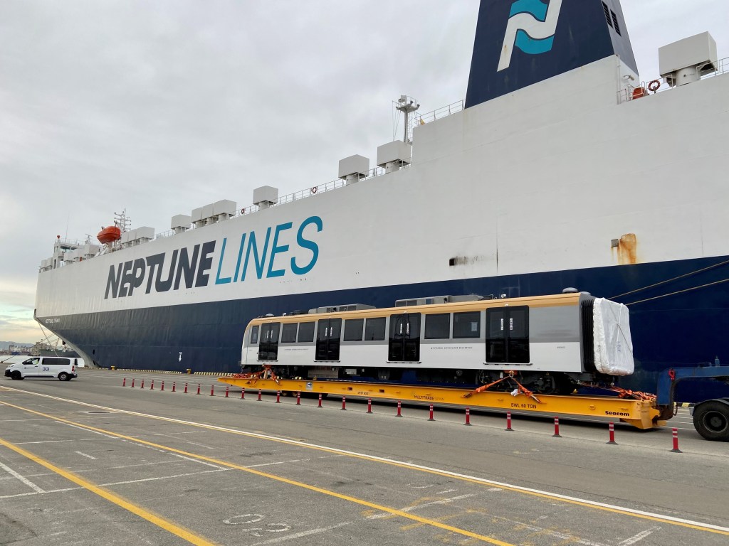 El pasado 16 de febrero de 2022, embarcamos en Barcelona el primer envío de vagones de metro para Estambul en colaboración con nuestro cliente Multitrade, especialista en proyectos ferroviarios. Los vagones sobre roll tráiler embarcaron en el buque «Neptune Ithaki».